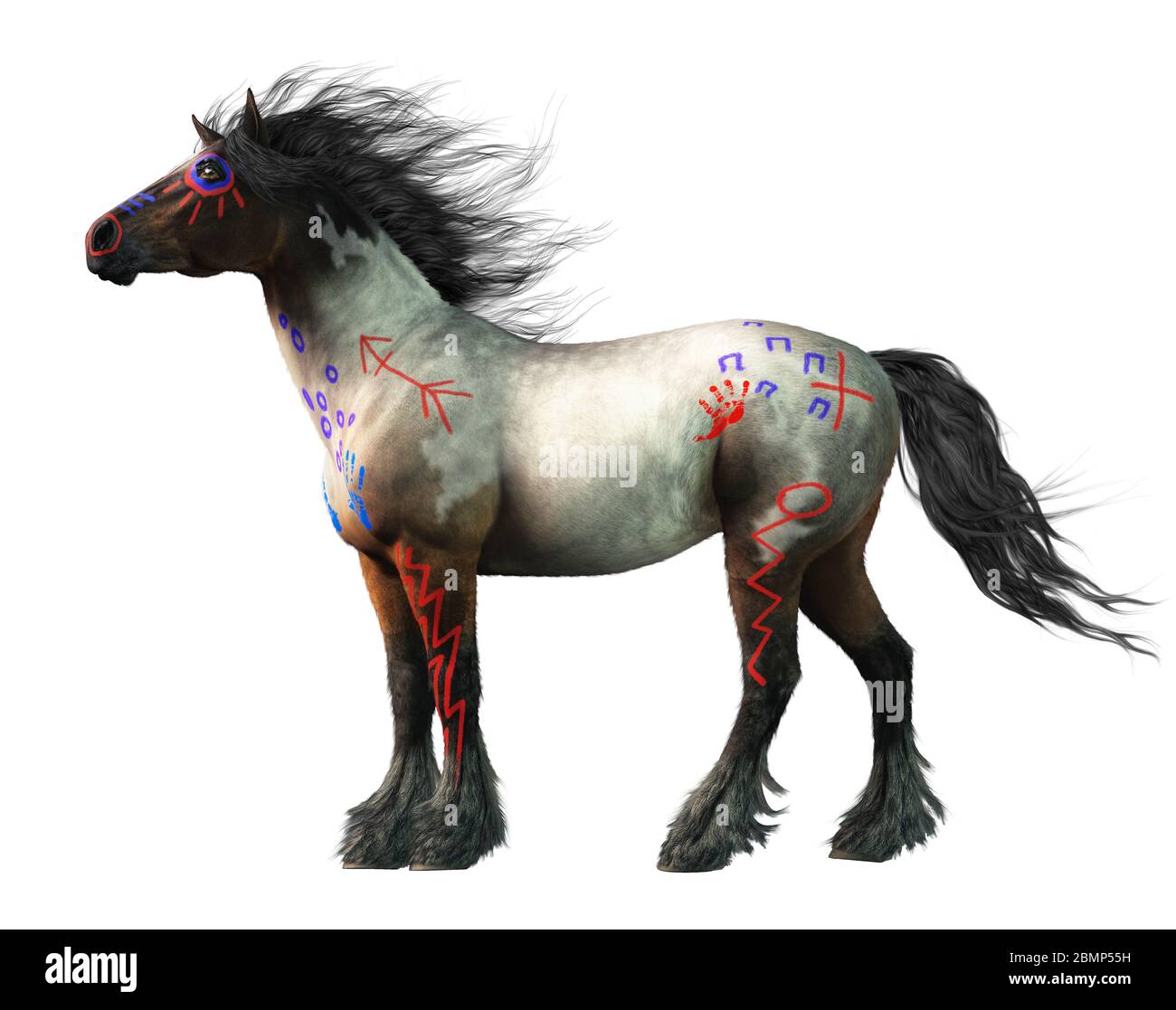 A Roan Coated Native American War Horse Wearing War Paint On A White Background Stock Photo Alamy